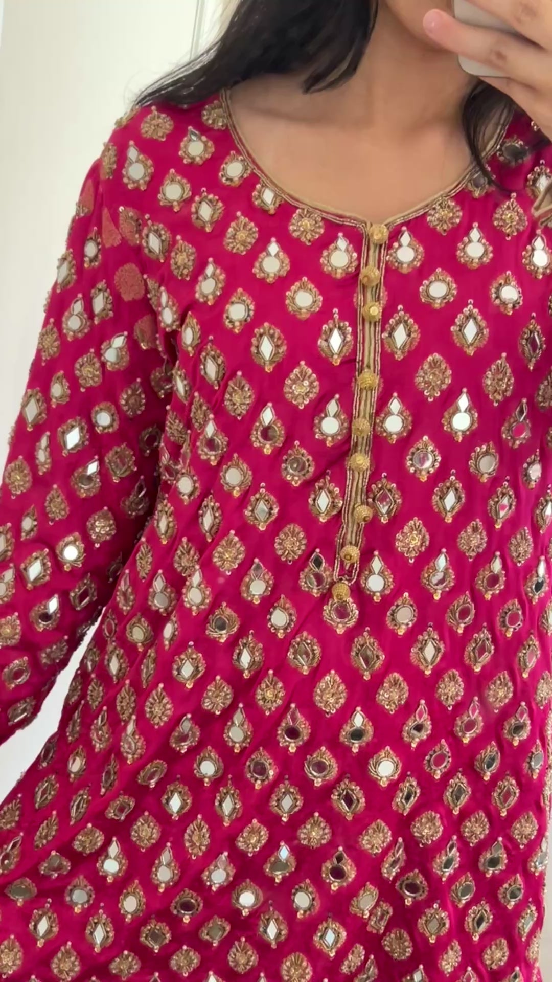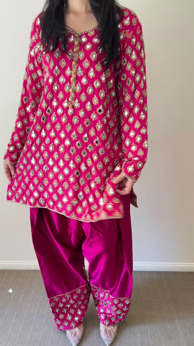 Meet the Hira 3pc Set – your secret weapon for stealing the spotlight at any wedding! Wrapped in vibrant hot pink with mesmerising mirror embellishments, this ensemble guarantees you'll be the most dazzling guest in the room. Whether it's a ceremony, reception, or celebration in between, this radiant set delivers instant glamour and confidence.